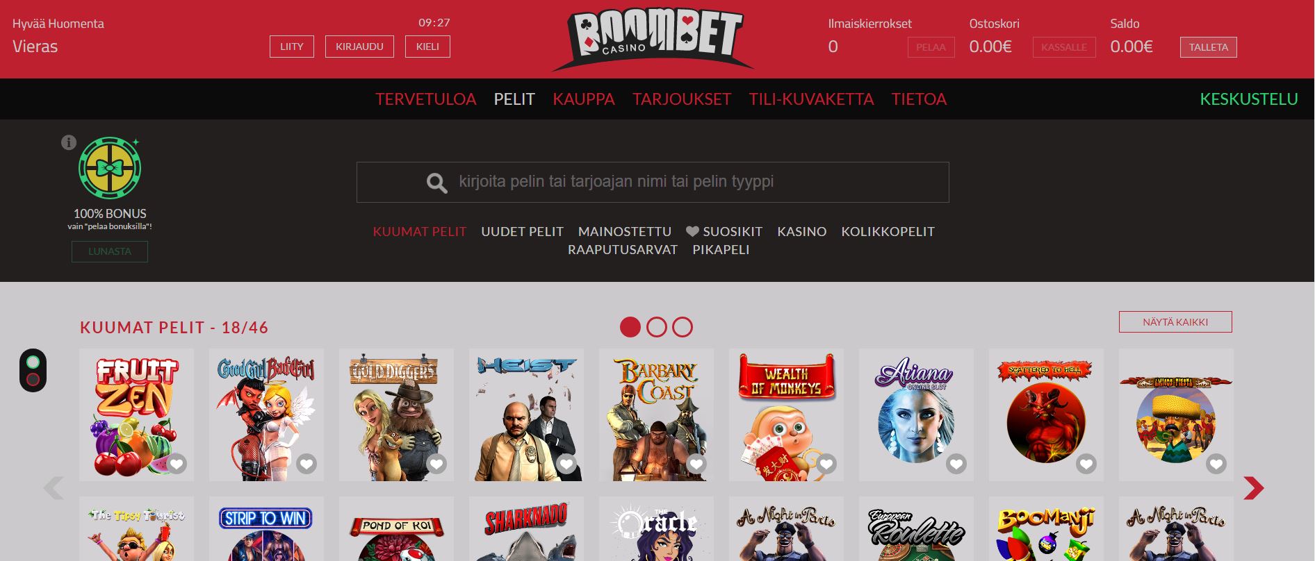 Hyvinkin modernilla rakenteella ja viihdytävillä efekteillä varustettu Boombet on oivallinen valinta hieman erikoisemmasta rakenteesta innostuneille pelaajille. Luova ja yllättävä ulkokuori ei kuitenkaan ole heikentänyt sivuston muuta laatua, vaan kasinolta löytyy monipuolisesti kaikki tarvittava. Selkeyttä on selvästi pohdittu muutenkin kuin vain hauskuuden kannalta, sillä löydät tarvittavat informaatiot helposti ja nopeasti. Musta-punaisen struktuurin sisällä pääset navigoimaan helposti pelien välillä, ja tarkistamaan saldosi ja ilmaiskierroksesi suoraan sivun yläosasta.