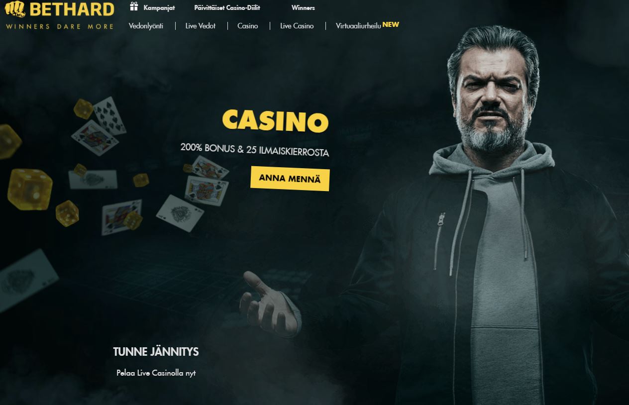Bethard on kasino, joka tekee voittajia päivittäin. Tällä kasinolla se pelaa, joka ei pelkää sillä Bethard kasino on täynnä asennetta. Bethardilta löydät vedonlyönti, live veto, casino, live casino sekä virtuaaliurheilu osion, jokaisen osion alla on laaja valikoima pelejä, joten valikoivampikin yksilö voi löytää takuulla omansa.