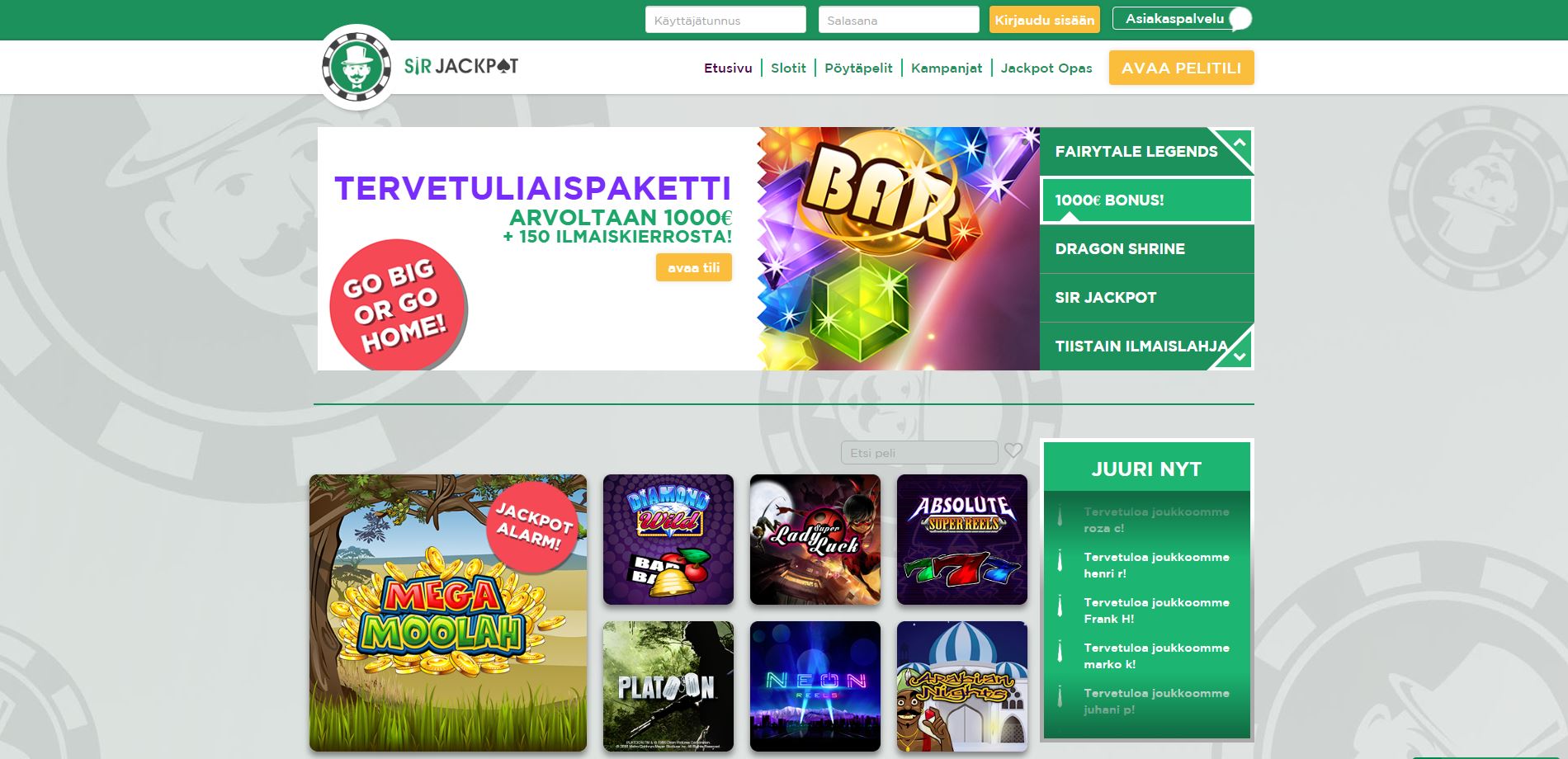 Kaiken kaikkiaan, Sir Jackpot on loistava pelisivusto, joka tarjoaa pelaajilleen vain parasta laatua. Kasinolla pelaaminen on aivan uudenlainen kokemus, kun kokeilet pelaamista Sir Jackpot -sivustolla. Saatavilla on mahtavia bonustarjouksia niin uusille kuin vanhoillekin pelaajille.